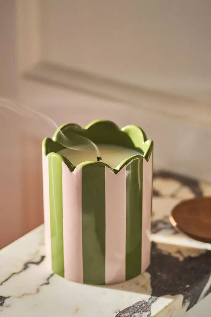 **Pistachio & Sea Salt (Gourmand):** Sea salt, coconut, pistachio, almond, jasmine, heliotrope, vanilla, sandalwood. *For the best burn experience, keep the following in mind:* * The first time you light your candle, allow it to burn until the wax pool melts all the way to the edge; for a larger candle, this may take several hours. Wax has "memory," so if it is extinguished with a partial pool, that will prevent a full, even pool from forming in the future. * Trim your wick each time you light the candle, removing any "bloom" from the previous burn. We recommend lighting a wick that is 1/4-1/2" in length. * Ensure that your candle is placed on a heat-safe surface. * Do not allow wick trimmings, dust, or other materials to accumulate in the wax pool. * To ensure safety and longevity, be sure to check the bottom of your candle for additional instructions, including details on when to discontinue use.